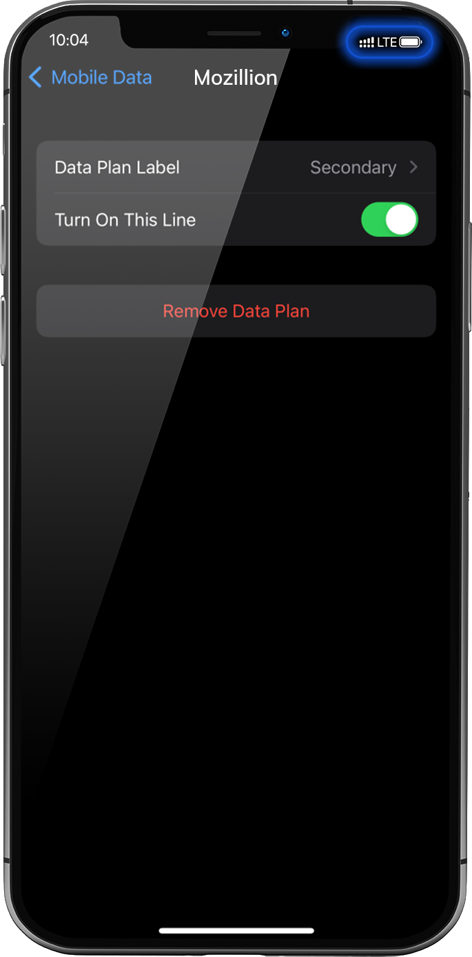Cellular Data must be applied to the Mozillion Travel eSIM profile to access the Internet.