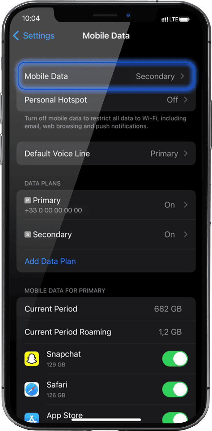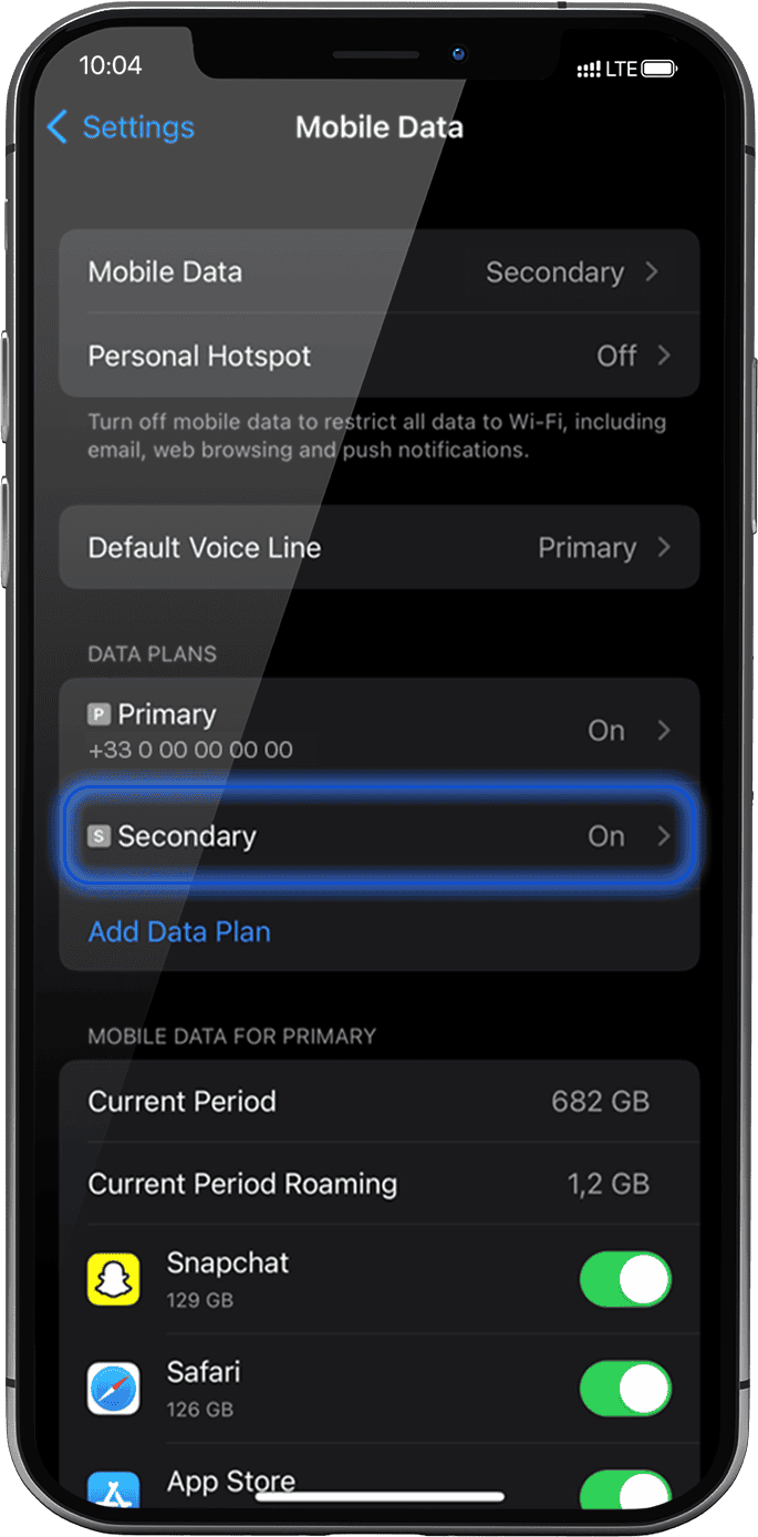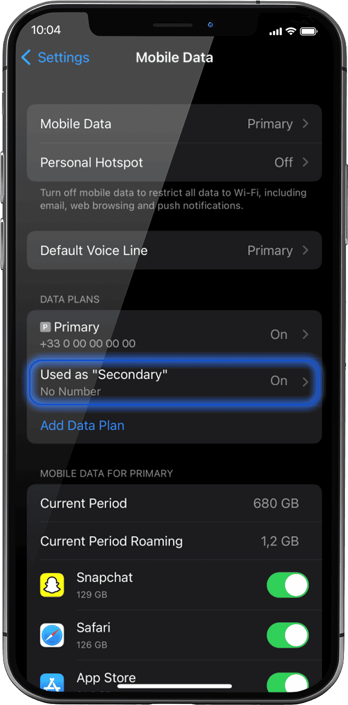 To do that, go to: Settings > Mobile Data > Mobile Data again, select Secondary: