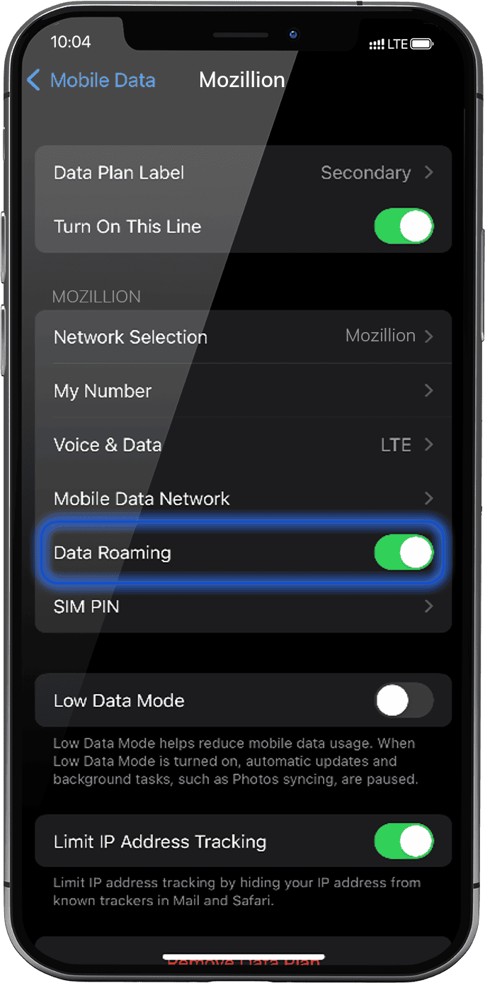 NB: The Data roaming option is now activated only for your Mozillion Travel eSIM profile. This means that you won’t have extra roaming costs as only Mozillion Travel eSIM rates will be applied while using the Mozillion Travel eSIM cellular connectivity.