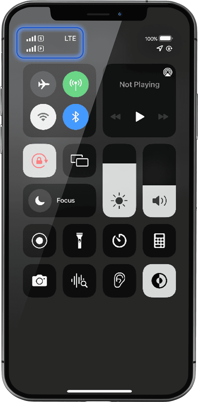 NB: the double network only appears if you have also a physical SIM card/eSIM profile for voice & SMS installed on your device. If there is no physical SIM card installed, only the stepped bars network will be displayed.